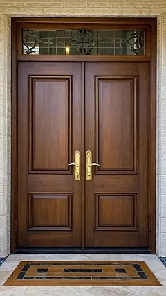 This wooden door is so fancy, it’s practically begging for a dramatic entrance! Just picture yourself stepping through, ready to conquer the world… or at least ace your next history test. With its polished wood and shiny gold handles, it’s the kind of door that makes you feel like you’re walking into a secret VIP club, even if it’s just your own house.