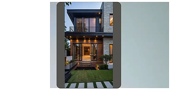 This house looks like it fell out of a fancy magazine and landed right here, probably needing a soft cushion. Check out those giant glass doors and the cool balcony – perfect for dramatically gazing into the distance or just awkwardly waving at the neighbors. If this isn’t peak dream house material, I don’t know what is! It’s the kind of place that makes you immediately start sketching out your own version, complete with a built-in trampoline park and maybe a chocolate river in the backyard.