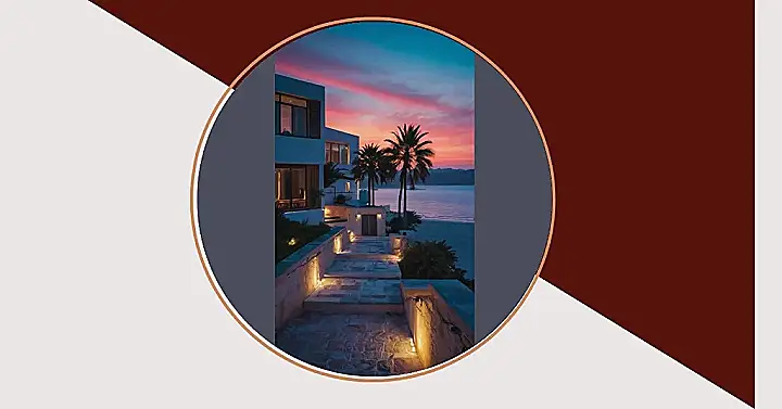 This picture is like a postcard from a dream vacation! Imagine walking down those steps, feeling the soft sand between your toes, and hearing the gentle waves crashing against the shore. The warm glow of the setting sun paints the sky in shades of pink and orange, making the whole scene look like it’s straight out of a movie. You can almost smell the salty air and feel the cool breeze on your face.