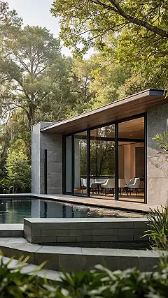 Check out this house – it’s like something straight out of a music video where you’re the chill billionaire lounging by the pool! I bet you could just roll out of bed, do a cannonball, and then grab some breakfast without even putting shoes on. Plus, with all those giant windows, spying on squirrels in the forest would be a totally acceptable hobby.