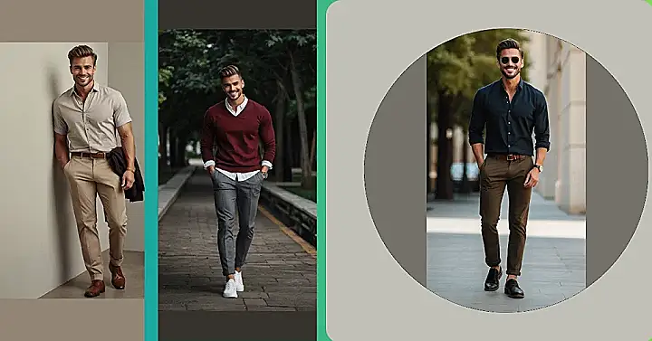 Hey there, future fashion icon! This guy knows how to rock a casual shirt outfit. See that maroon shirt and those awesome khaki pants? It’s like he stepped straight out of a style magazine, but in a totally chill way. Forget stuffy suits; this look is perfect for hanging out with friends, grabbing some pizza, or even impressing your crush (without trying too hard). This is “casual cool” defined, and who doesn’t love a comfy outfit that also makes you look good?