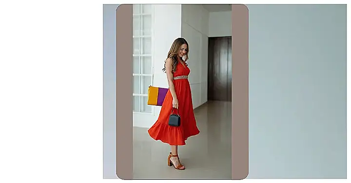 This girl is rocking a bright red dress that’s practically screaming “summer!” It’s super flowy and light, perfect for those hot days when you want to feel cool and breezy. Plus, that little black purse is the perfect accessory to add a touch of sophistication. You can tell she’s ready for anything, maybe a fun party or a fancy dinner date – either way, she’s definitely got the look down. Don’t forget her cute brown sandals! It’s like she’s saying, “I’m here to have a good time!”