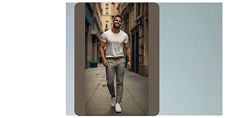 This Valentine’s Day, forget the old sweatpants and hoodie! This guy’s got the perfect outfit to impress your date – or yourself! A crisp, clean white shirt and some stylish beige pants say “I put some effort in,” without being too over-the-top. Plus, you can totally rock this look anywhere, from a romantic dinner to a casual coffee date. He looks super confident and ready for anything – just add a smile like his and you’re set for a fabulous Valentine’s Day.