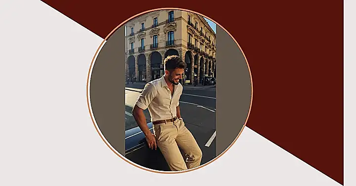 Trying to figure out how to look good without trying too hard? This dude’s got it down. He’s rocking a simple white shirt and chinos, which is like the pizza and soda of outfits – always a good choice. Notice the sunglasses and the rolled-up sleeves? That’s how you go from “just woke up” to “ready for anything,” even if “anything” is just chilling by the pool thinking about algebra.
