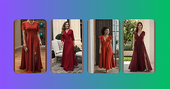 That rusty-red maxi dress is seriously stunning! It’s like a superhero costume for grown-ups, but instead of fighting crime, you’re fighting boredom. Imagine rocking this at a fancy party or even just hanging out with friends; you’ll be the most stylish person in the room! The dress is simple but so elegant; with some cute accessories, it’s ready for anything. Who needs capes when you have this?