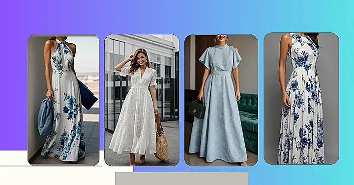Wearing a long, flowy casual maxi dress makes you feel ready for anything, from a chill day at the park to pretending you’re in a slow-motion movie scene when the breeze hits just right. This blue and white one in the picture is basically sunshine in dress form, even if it’s cloudy outside. It’s proof that you can be comfy *and* look effortlessly cool. No need for complicated layers or trying to make skinny jeans feel like a good idea after lunch – just pure, easy, breezy style ready for whatever chill adventures come your way.