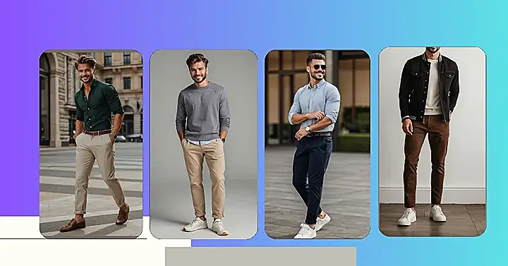 Want to look effortlessly stylish without even trying? This light blue shirt and white pants combo is like the “cheat code” for casual wear. It’s comfy enough to chill with your friends but still sharp enough to impress your crush. Plus, you could totally rock this outfit to a family gathering and your aunt would definitely say you look handsome!