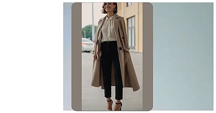 This woman is rocking an outfit that’s totally boss! Her long beige coat is so stylish, it practically screams “I’m going places!” And don’t even get me started on those heels! They’re like the perfect finishing touch. It’s the kind of outfit that would make you want to walk around town with your head held high, like you own the place.