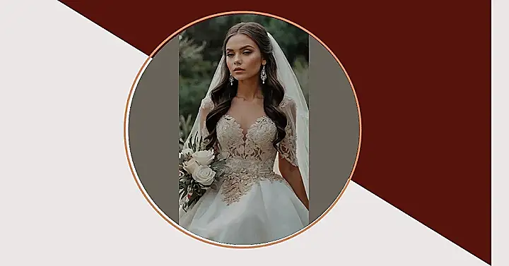 This hairstyle is seriously the stuff of fairytales! Imagine yourself walking down the aisle, looking like a total princess with this gorgeous half-up, half-down ‘do. Those bouncy curls are so dreamy, and that sparkly hairpiece? It’s like a crown for your hair! You’ll be turning heads all day, even if you accidentally step on your own dress (don’t worry, we’ve all been there!).