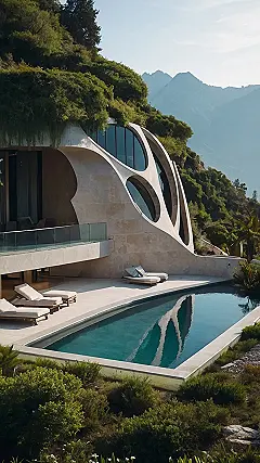 This place is seriously awesome! Imagine a house that looks like it grew out of the side of a mountain, all curvy and cool, with a swimming pool so clear you can practically see into another dimension. It’s like a super-stylish hobbit house went to architecture school and got a serious upgrade. Luxury places photography? This place practically *is* luxury places photography! It’s so unbelievably photogenic, you’d need a whole year of Instagram posts to capture it all. Think of the selfies by the pool! Seriously, it’s the ultimate hangout spot.