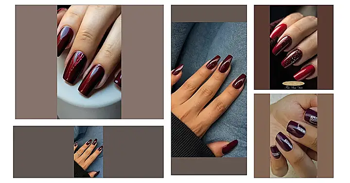 When it comes to shapes, we have long and almond styles that beautifully lengthen fingers, or short and square nails which are practical yet chic. And let’s not forget about finishes. Did someone say glitter? Yes, please! A hint of shimmer can transform your plain burgundy nails into a sparkling masterpiece that shines brighter than your weekend plans! But if you prefer something more muted, a matte finish offers sophistication with a modern twist.