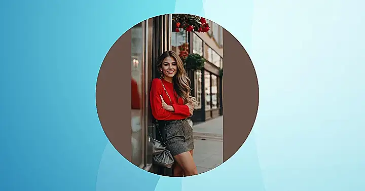This girl is rocking the “casual dinner outfit fall” look like a pro! Her red sweater is totally cozy, and her skirt looks super comfy – perfect for a night out with friends. She’s even got a cute little purse to match. I bet she’s going to the best restaurant in town and is ready to have an amazing time. With that big smile on her face, she’s definitely feeling confident and ready to conquer the night.