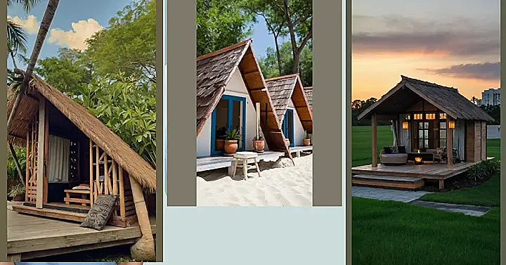 Check out these adorable A-frame cabanas! They’re like tiny beach houses, perfect for a relaxing getaway. Imagine yourself sipping lemonade, toes in the sand, while reading your favorite book inside your own little paradise. They’re so cute, you’ll want to build a whole village of them, and maybe even add a volleyball net for some friendly competition!