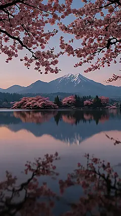 This picture is like a dreamy postcard from Japan! Imagine waking up to this view – a serene lake perfectly reflecting a majestic Mount Fuji, all framed by the prettiest, fluffiest cherry blossoms you’ve ever seen. It’s basically a “Cherry Blossoms Wallpaper” come to life, but way more spectacular. You could totally use this as a screensaver and pretend you’re sipping tea in a Japanese garden every time you open your laptop. It’s so peaceful, you might even accidentally start practicing your origami skills!