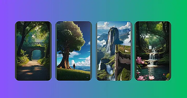 This picture is like stepping into your favorite anime! Imagine a magical forest, straight out of a Studio Ghibli movie, with trees so green they practically glow. A sparkling waterfall cascades down mossy rocks, creating a hidden pool so clear you could almost see the bottom. It’s the perfect backdrop for a peaceful scene, maybe a character is meditating by the water, or a friendly forest spirit is peeking from behind the trees! It’s the kind of scenery that would make an awesome anime scenery wallpaper, right?
