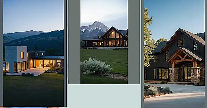 This modern ranch house is like something out of a magazine! With its sleek lines and tons of windows, it looks like the perfect place to relax and enjoy the views. Imagine waking up to those gorgeous mountains every morning – talk about a dream home! The house looks comfy and cozy inside, with warm lighting and a fireplace. It’s got a modern twist on the classic ranch house design, making it both stylish and comfortable.