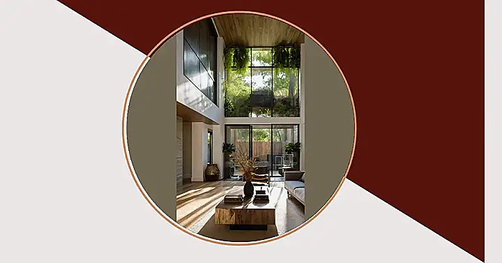 This living room is seriously next-level! Imagine waking up and having a mini-jungle right outside your window—that’s basically what this place is like. It’s got all the cool, modern stuff—like that awesome wooden coffee table and super comfy-looking couch—but then BAM! Tons of plants hanging from the ceiling and huge windows showing off a garden. It’s like they took a super stylish apartment and decided to let Mother Nature crash the party. Talk about organic modern living!