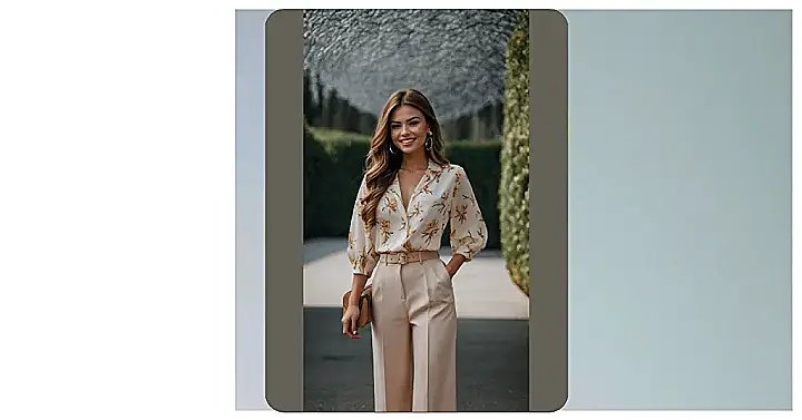 Forget trying too hard to look fancy. ‘Classy women outfits’ like the one in the picture are basically your secret weapon for looking awesome without spending hours deciding what to wear. That flowy shirt and comfy-looking wide pants? It’s the perfect mix of “I’m here to look great” and “I could totally still run for the bus if I needed to.” It’s the kind of outfit that says you know what you’re doing, even if you’re just deciding what flavor of ice cream to get.