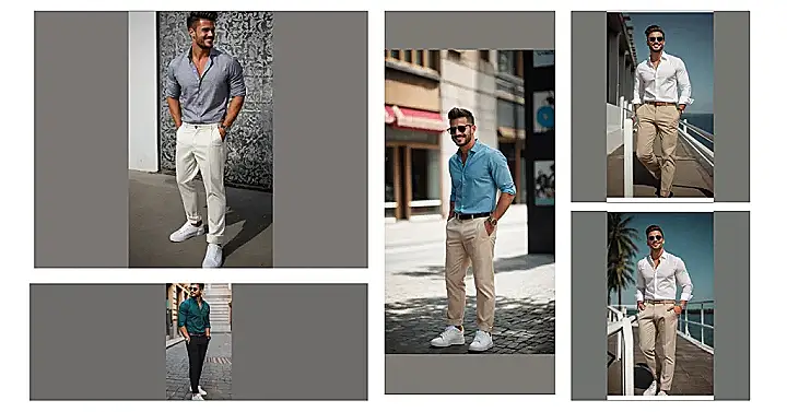 This is your secret weapon for looking put-together without looking like you tried *too* hard. The rolled-up sleeves on that shirt? Chef’s kiss! It’s basically saying, “Yeah, I’m stylish, but I’m also ready to help you move that couch.” So, if you’re aiming to impress without going full suit-and-tie, this men’s shirts outfit is a total win. You’ll be turning heads (and maybe inspiring some envious stares) in no time.