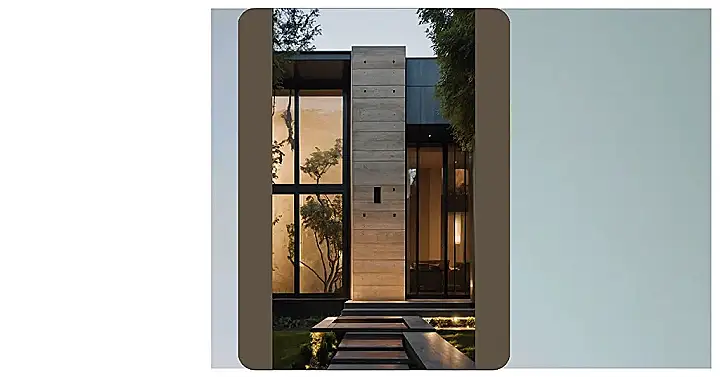 But don’t worry, it’s not all futuristic stuff. This house has a warm, inviting feel too. The steps leading up to the entrance are like a gentle invitation to step inside and explore. And those soft lights shining out from inside? They make it feel like a cozy haven, even though it looks like it could be on a different planet.