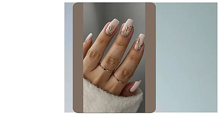 These nails are totally giving off “fall vibes”! The soft pink color reminds me of a comfy sweater and the delicate white leaves are like a gentle breeze rustling through trees. You could almost hear the crunch of leaves under your feet while you’re admiring these gorgeous nails.