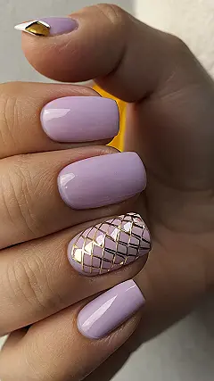 These nails are like if a princess did the dishes! The soft purple is totally chill and cute, perfect for a busy mom who needs something that goes with everything from soccer practice to parent-teacher conferences. But then BAM, that gold detail adds a touch of sparkle and shows she still has her own style!