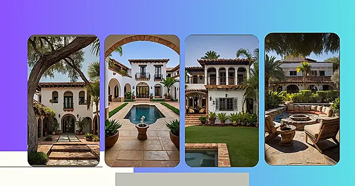 Imagine this: You’re strolling into a home straight out of a movie – all white walls, terracotta roofs, and arches that whisper tales of sun-drenched siesta. It’s a hacienda, a style of home that screams “relax” while secretly plotting your next amazing pool party. The huge tree in the courtyard almost seems to be saying, “Come on in! It’s shady and awesome under here.” And those giant planters? They’re not just for show; they’re silently judging whether you brought enough snacks for the fiesta.