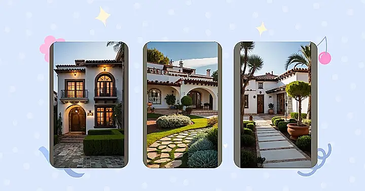 Check out this cool Spanish-style house! It’s like a villa but not scary expensive (hopefully). With that cozy arched doorway and those cute little balconies, you could totally picture yourself chilling with some churros and a juice box after school. Imagine telling your friends you live in a place that looks straight out of a movie – instant coolness points, right?