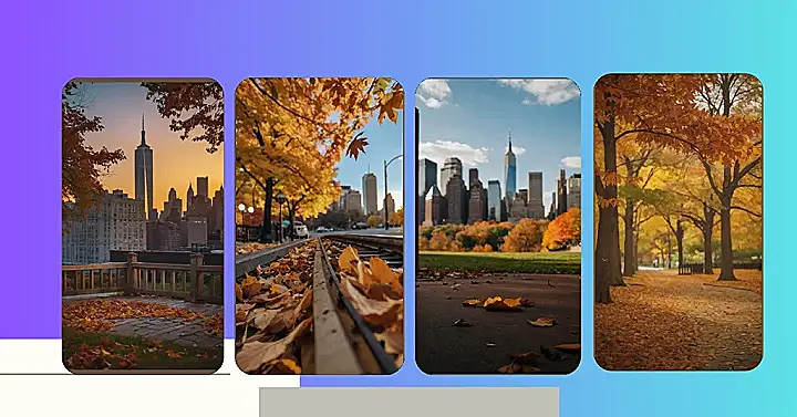 Imagine this: you’re walking down a quiet street in New York City, and the air smells like crisp leaves and hot coffee. The trees are bursting with fiery orange and red leaves, like a giant, natural confetti cannon exploded all over the city. You spot a little park bench, perfect for a quick break, and you take a seat. The leaves are swirling around you, making you feel like you’re starring in a movie. It’s a moment of pure, autumnal bliss.