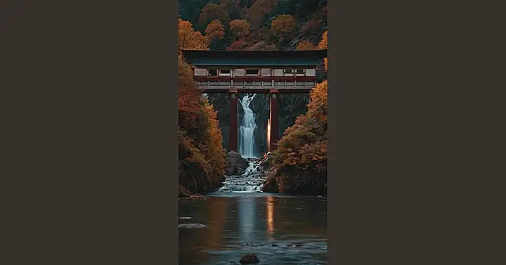 This picture makes me think of a movie scene where someone is trying to escape! Imagine a daring hero leaping across a bridge over a waterfall, with the villain hot on their heels! It’s like something out of a ninja movie, except this bridge looks way too old to be in a high-tech ninja movie! Maybe it’s some mystical ancient ninja magic, or perhaps just a really good hiding spot for a secret ninja training school! Either way, this bridge would be a cool place to chill and look at the flowing water, and maybe try to imagine what kind of ninja adventures happened there in the past.