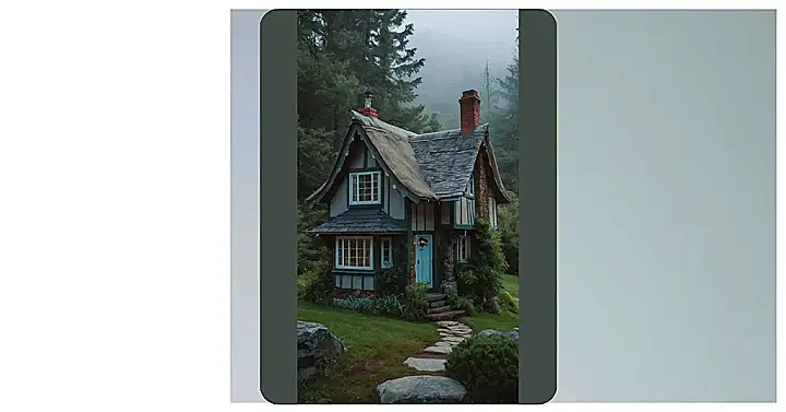 This adorable cottage looks like it jumped right out of a fairy tale! With its charming, pointy roof, covered in moss, and a cute little porch with a turquoise door, it’s the perfect place to escape the hustle and bustle of life. Imagine cozying up inside with a good book and a cup of hot cocoa, while the rain gently taps on the windows – pure bliss!