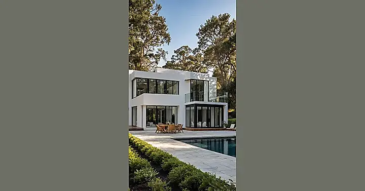 Thinking about a ‘white house exterior’ usually conjures up images of fancy pillars, historical secrets, and maybe even seeing the President wave from a balcony. But hold up! The ‘white house exterior’ in this picture is like the super-modern, laid-back cousin you didn’t know existed. It’s all clean white walls and huge glass doors that scream ‘come hang out,’ not ‘don’t touch anything!’