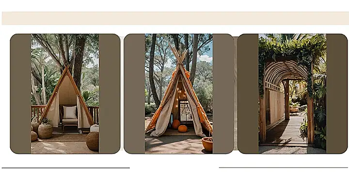 This isn’t your grandma’s cabana—unless your grandma is seriously awesome and loves pumpkins! Check out this super-cute teepee, perfect for a backyard adventure or a cozy reading nook. It’s got that magical fairy-light vibe, orange accents that scream autumn fun, and even room for a couple of plump pumpkins to keep you company. It’s like a mini-vacation in your own backyard! Who needs a plane ticket when you’ve got this?