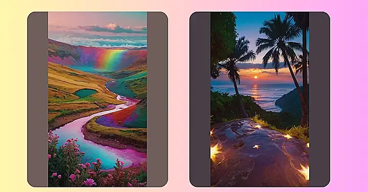 This picture is like a rainbow exploded all over the place! It’s a totally wild mix of colors, with a river winding through mountains like a giant, colorful snake. It’s like someone took a bunch of paint, threw it at a landscape, and then said, “Let’s see what happens!” This place is so colorful, you might need to wear sunglasses just to look at it.