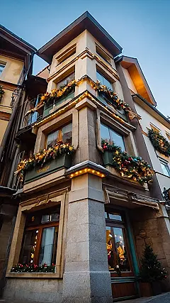 Imagine waking up to this view every morning! This charming little building, all decked out for Christmas, looks like it’s straight out of a holiday movie. The twinkling lights, the festive garlands, and the snow-dusted windowsills just scream “cozy Christmas in Europe.” You can almost smell the gingerbread baking in the nearby bakery!