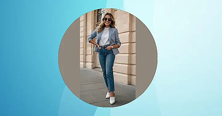 Who needs a sparkly tiara when you’ve got a killer pair of mom jeans and a stylish blazer? This look proves that casual can be effortlessly chic. The high-waisted jeans create a flattering silhouette, and the light blue blazer complements the denim perfectly. It’s the kind of outfit that’s comfortable enough to wear all day, but stylish enough to turn heads. It’s the ultimate proof that comfy and cool can totally go together!