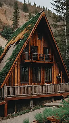 This cabin is a dream come true! It’s made entirely of wood, and the roof is even covered in grass. Just imagine how cozy it would be to sit on the porch, sipping hot chocolate, and listening to the wind rustle through the trees. It looks like a real-life fairy tale house. Maybe you could even spot a friendly woodland creature or two hiding in the nearby bushes.