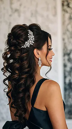 And don’t even get me started on that hair accessory! It’s not just hair; it’s a whole *vibe* happening on top of your head. That little bit of bling tucked into the bun adds some serious pizzazz, like adding extra cheese to your pizza (which is always the right choice). Plus, a good updo keeps your hair out of your face so you can actually see who you’re smiling at. For anyone targeting a 2025 celebration, remember that sparkly bits are basically hair jewelry and can make any style look like you just stepped out of a fairy tale!