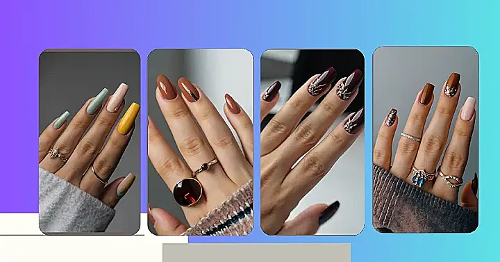 These nails are seriously giving us autumn vibes! The warm brown color reminds us of cozy sweaters and falling leaves, while the sparkly accents add a touch of glam. We’re thinking this would be the perfect look for a fall festival or a night out with friends. It’s totally a vibe, and you could even rock it with some cute boots!