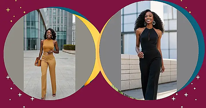 This image is all kinds of fabulous! Just look at this stunning black jumpsuit— it’s like the ultimate “black lady outfits” goal. It’s sleek, chic, and makes this model look like she’s ready to take on the world (or at least, a seriously awesome party). The cut is super flattering, and that hair? Don’t even get me started! The whole look screams confidence and style—who needs a tiara when you’ve got that much swagger?