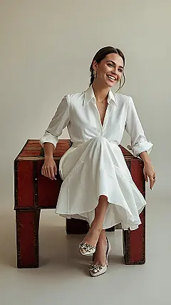 And guess what? You don’t need a fancy runway to showcase your amazing style. This image shows that sometimes, the simplest outfit—a stylish white dress and fabulous shoes—can make the biggest statement. Who needs a whole wardrobe of crazy clothes when you’ve got something this effortlessly elegant? This look is totally inspiring, proving that middle-aged women’s fashion is all about finding pieces that make you feel fantastic!