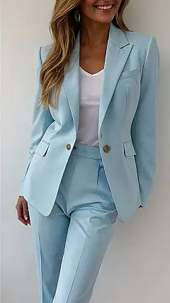 Forget frumpy suits, Grandma! This isn’t your grandpa’s boring business attire. This baby blue power suit is totally chic and screams “confident and ready to conquer the world,” but in a super stylish way. Imagine walking into your next big presentation, looking like a cool summer breeze instead of a stuffy textbook. The color alone is enough to make everyone smile, and let’s be honest, who can resist a perfectly tailored suit? This isn’t just clothing; it’s a statement – a declaration that women in suits can rock any color and still own the room!