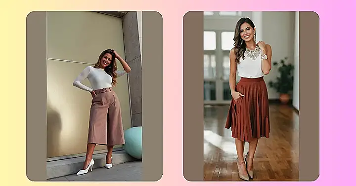 This outfit is totally giving us fall vibes! The flowy beige skirt looks so comfy and stylish. Imagine twirling through a pile of crunchy leaves in this look. And that light blue shirt? Perfect for layering with a cozy sweater when the air starts to get nippy. It’s a great outfit for a casual day out with friends, or maybe even a date at the pumpkin patch!