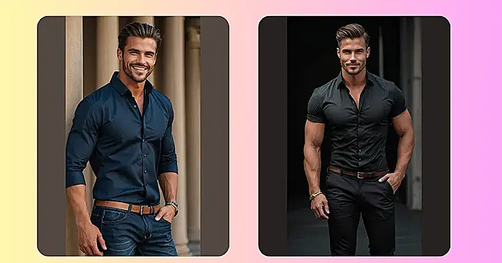 This Valentine’s Day, ditch the cheesy Cupid tees and embrace your inner James Bond! This all-black outfit is seriously suave—a short-sleeved shirt and sharp trousers are way more stylish than a heart-shaped balloon. Think about it: You’ll look so good your date will forget all about the overpriced chocolates and instead focus on how amazing you look. Plus, who needs a teddy bear when you’ve got biceps like that?