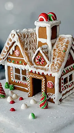 This gingerbread house is seriously next-level! It’s like a tiny, delicious village straight out of a Christmas movie. Look at those perfectly frosted snowdrifts, the little candy windows glowing warmly, and even the miniature gingerbread trees sprinkled around—it’s almost too cute to eat! Seriously though, who needs a real house when you can build one entirely out of gingerbread and candy? It’s basically the ultimate cozy holiday project, giving you a chance to unleash your inner architect (and then, of course, the inner gingerbread-muncher!).