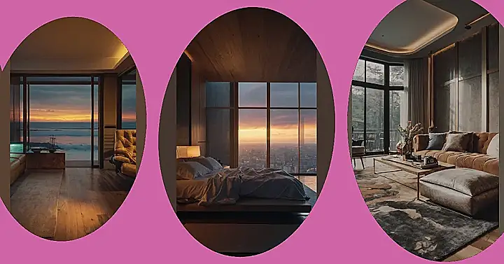 This picture shows a room with a view that’s straight out of a dream! Imagine waking up to this gorgeous sunset over the ocean every morning. It’s like having a private beach right in your living room! The warm colors of the sunset are reflected in the wooden floors, making the whole room feel cozy and inviting. It’s like stepping into a beautiful postcard.