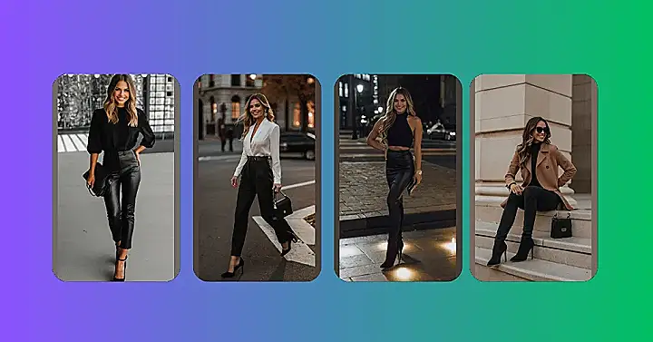 It’s almost like this outfit is saying, “Hey, look at me, I’m chic and I’m ready to take on the night!” The combination of the leather pants and the black top creates a super sleek look, and those heels just add a touch of sass. This outfit is perfect for anyone who wants to feel confident and ready to conquer the night!