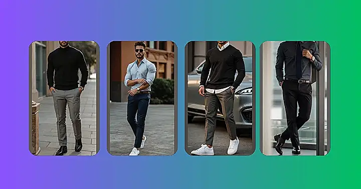 This guy’s totally rocking the corporate casual look! It’s like business-casual went to a really cool party and came back with some seriously stylish swagger. Forget stuffy suits; this black turtleneck and gray pants combo is all about looking sharp without feeling like you’re wearing a costume. He’s proving that comfort and class can totally hang out together – perfect for impressing your boss *and* still feeling like yourself.