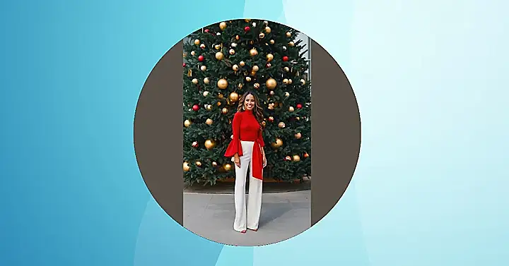 Wowza! Check out this festive outfit – it’s like Christmas threw up a rainbow of chic! That dazzling red top with the bell sleeves is totally rocking the holiday spirit, and those creamy white pants? They’re the perfect complement, keeping the look sophisticated and not overly matchy-matchy. It’s basically a “Merry Christmas” wrapped in style. Seriously, you could wear this to any holiday party and be the star of the show, even if that show is just another awkward family gathering.
