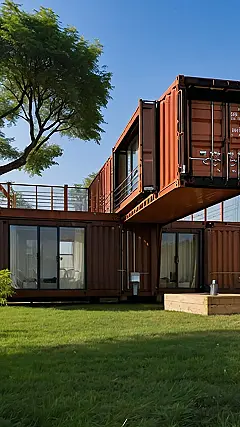 So, check out this house! It’s not built from bricks or wood, but from giant shipping containers! Remember those metal boxes you see on trains and boats carrying stuff all over the world? Well, some clever architects decided to use them to build homes and offices. It’s like playing with giant Lego blocks, but instead of a tiny castle, you get a whole house with a balcony! Who knew shipping containers could be so stylish?